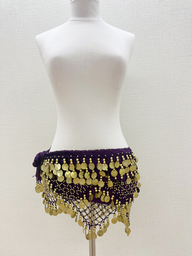 | 製品名: | ベロア生地がエレガント!ゴールドコイン付きの紫ヒップスカーフ【ベリーダンス衣装/レッスン着】 |