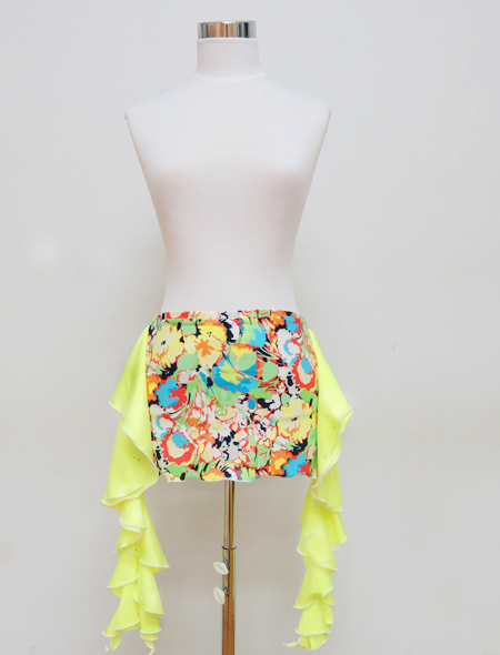 色とりどりの花柄にビタミンカラーで夏の暑さも吹き飛ぶ!パッと明るく目を引く爽やかカラー!しっかり伸びるストレッチ素材なので激しいレッスンでも着崩れしにくく最高なヒップスカーフです。