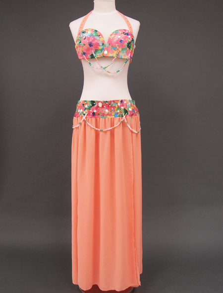 キラキラの装飾がステージの照明を反射し、華やかにみえること間違い無し!お求めやすい価格のベリーダンスコスチュームです。