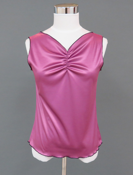 光沢のある紫ピンクが顔映りをよくしてくれるベリーダンストップスです!袖はフラワーたっぷりのネイビーなので引き締め効果も期待できます。さらりとした生地で肌触りも心地よく、お腹を出したくない日にもぴったり☆同じ柄のヒップスカーフとセットアップで着ても、単品で着ても可愛いのでレッスンウエアのレパートリーがぐんとベリーダンスレッスンウエアです。